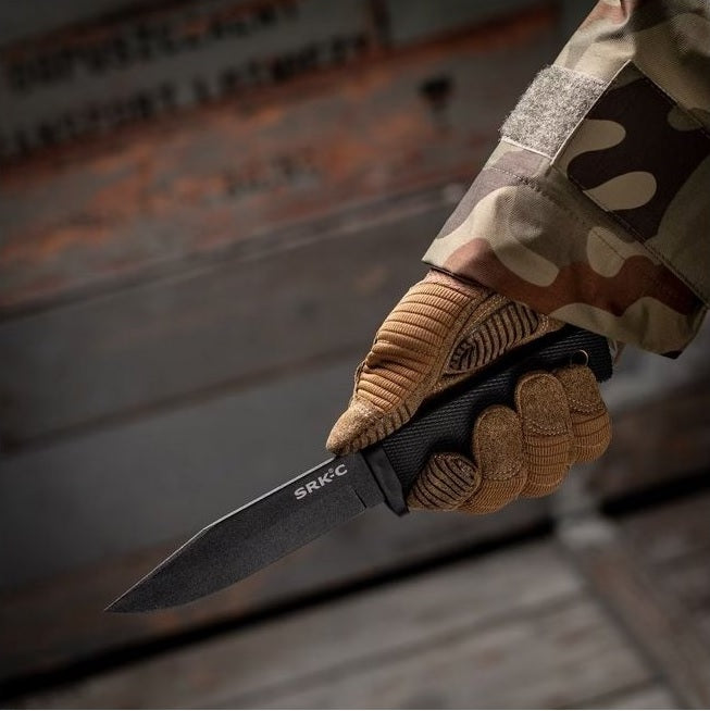 - السچين المميزة بالنصل الأسود المعزول SRK في تصميم أقصر وأخف وزنًا وأنحف بكثير.