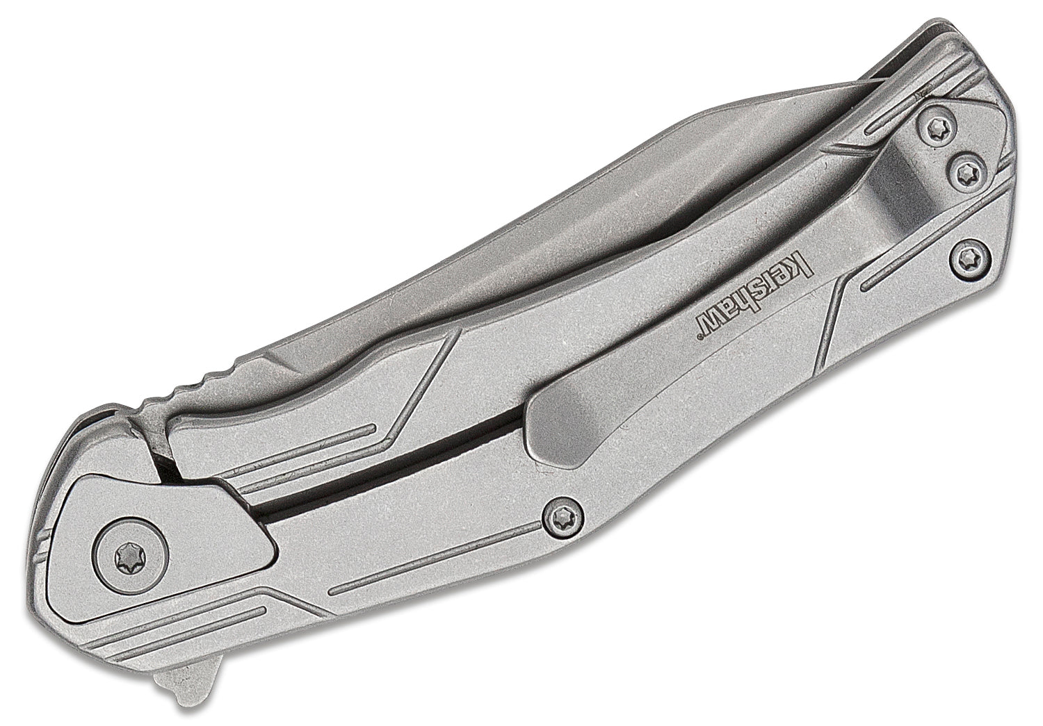 The 8Cr13MoV steel blade is razor-sharp and, with its 7.6 cm, large enough for all daily tasks. Think of peeling an apple, opening boxes or cutting paper to pieces. When opened the blade is locked by a framelock. It is clever that Kershaw added an overtravelstop to the whole. It ensures the lock won't overstretch. As such the lock will stay in great shape for years to come.