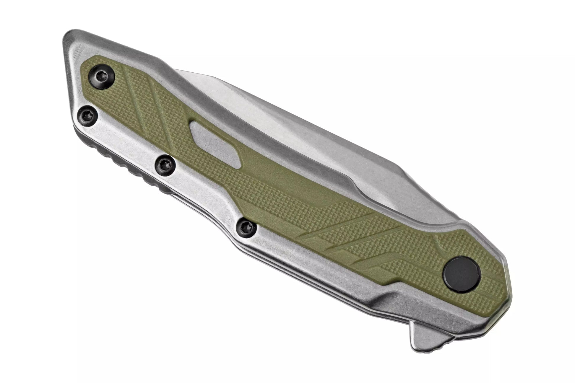 The Kershaw Salvage 1369 is a simple pocket knife. You open the blade by means of the flipper. The blade opens smoothly thanks to the assisted opening mechanism. The handle is made from stainless steel with a small layer of olive green FRN. The blade is made from 8Cr13MoV steel. This is a stainless steel with great sharpness retention. Also good to know: you can easily sharpen this type of steel. This means you never have to leave home with a blunt knife. The pocket clip allows you to easily carry the Kershaw Salvage with you.