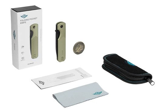 تم تصميم سكين Oknife Duron Framelock باللون الأزرق الداكن لتحقيق التميز اليومي، حيث يمزج بين التصميم التكتيكي والمواد المتطورة لتقديم سكين قابل للطي أنيق وموثوق به ومصمم للأداء.