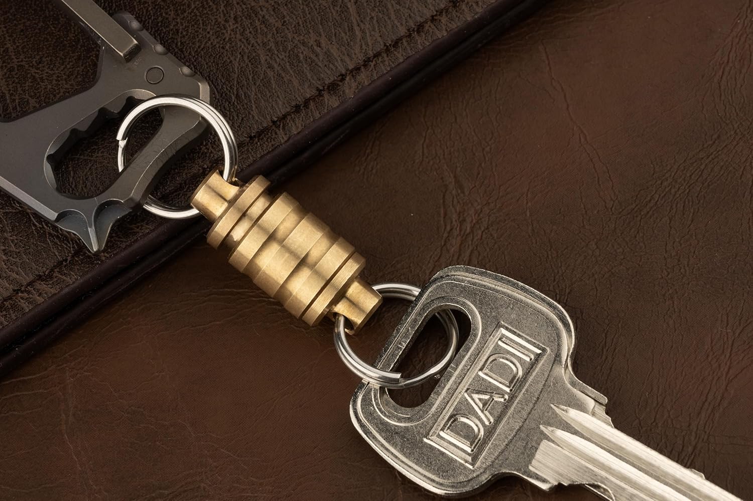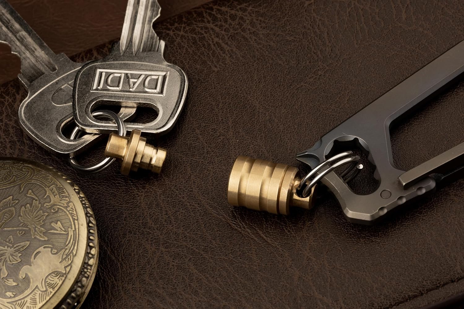 - Made of brass for durability and suitable as a mounting connector for keys, flashlights or EDC tools.