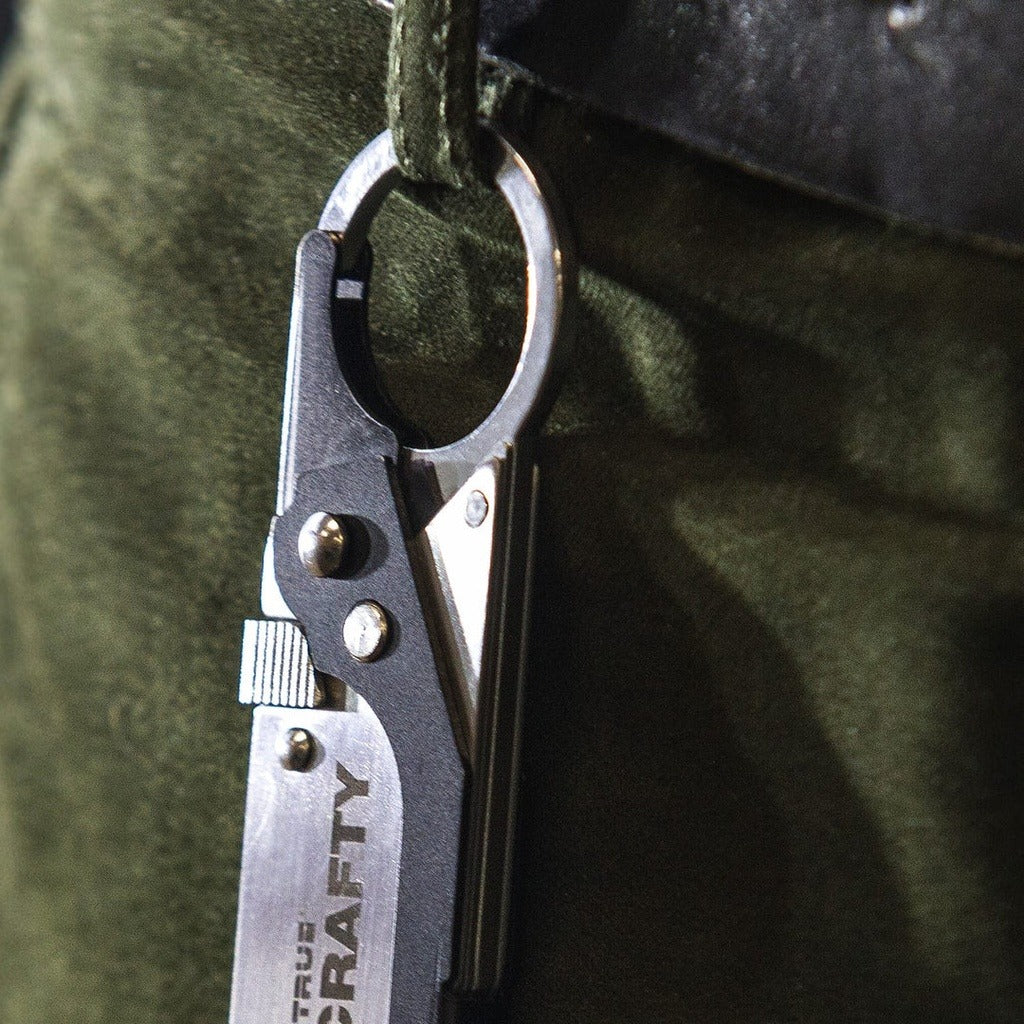 - Integrated Carabiner Clip: A circular, quick-release carabiner clip is built into the design, allowing easy attachment to a keychain, belt, or bag. This clip also doubles as a secure finger loop for enhanced control.