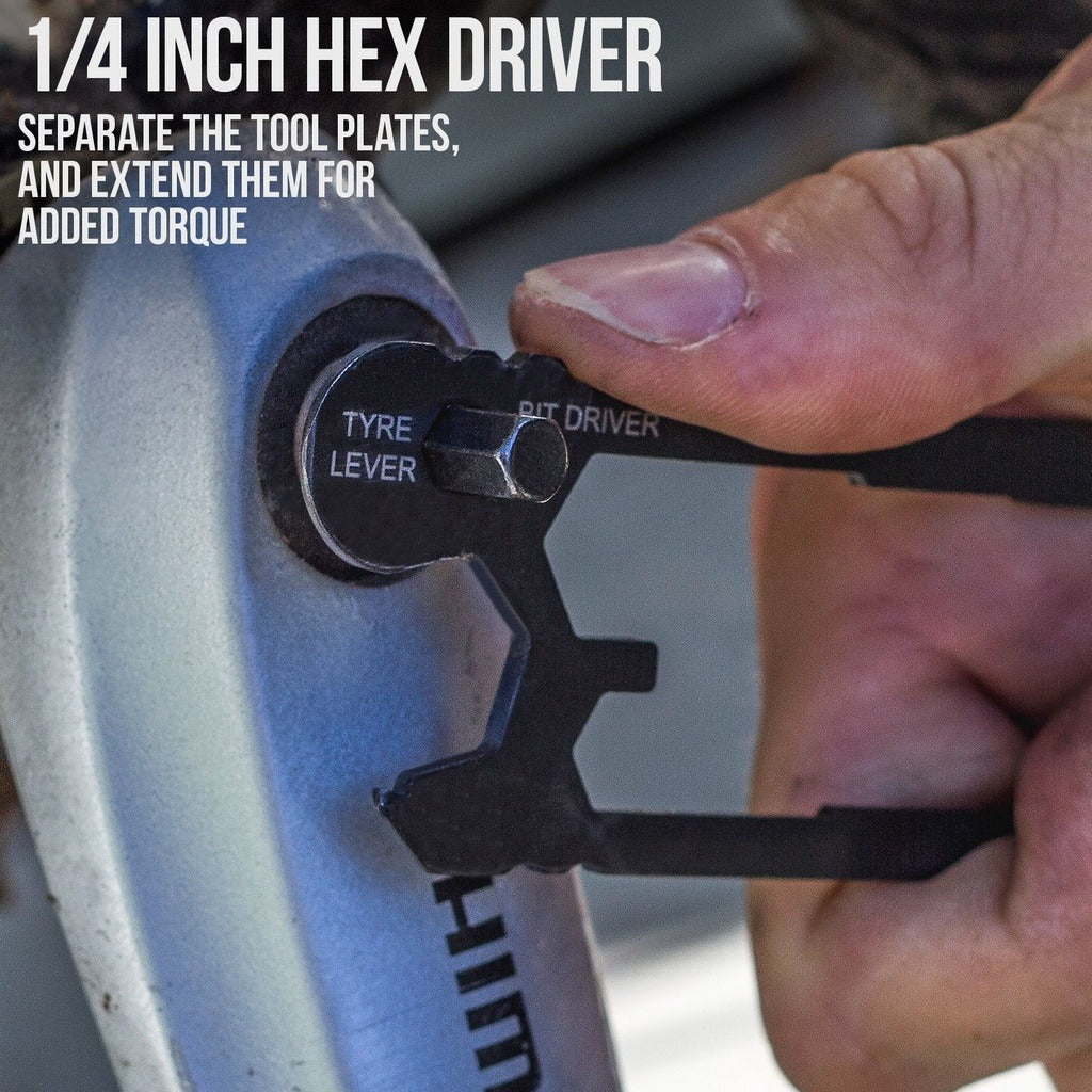 The True Utility Cycle-On (Model TU210) has a patented design that allows the two tool plates to be separated to maximize leverage for difficult bolts or used together for various functions.