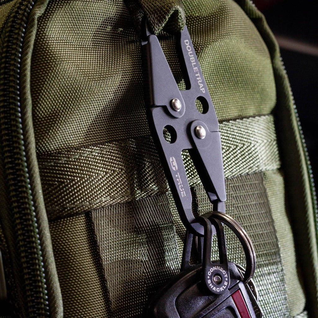 The True Utility DOUBLETRAP 2 is designed for strength and reliability, featuring a design inspired by the popular 'HK' clip used on U.S. military weaponry.
