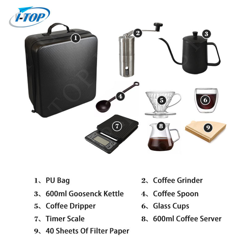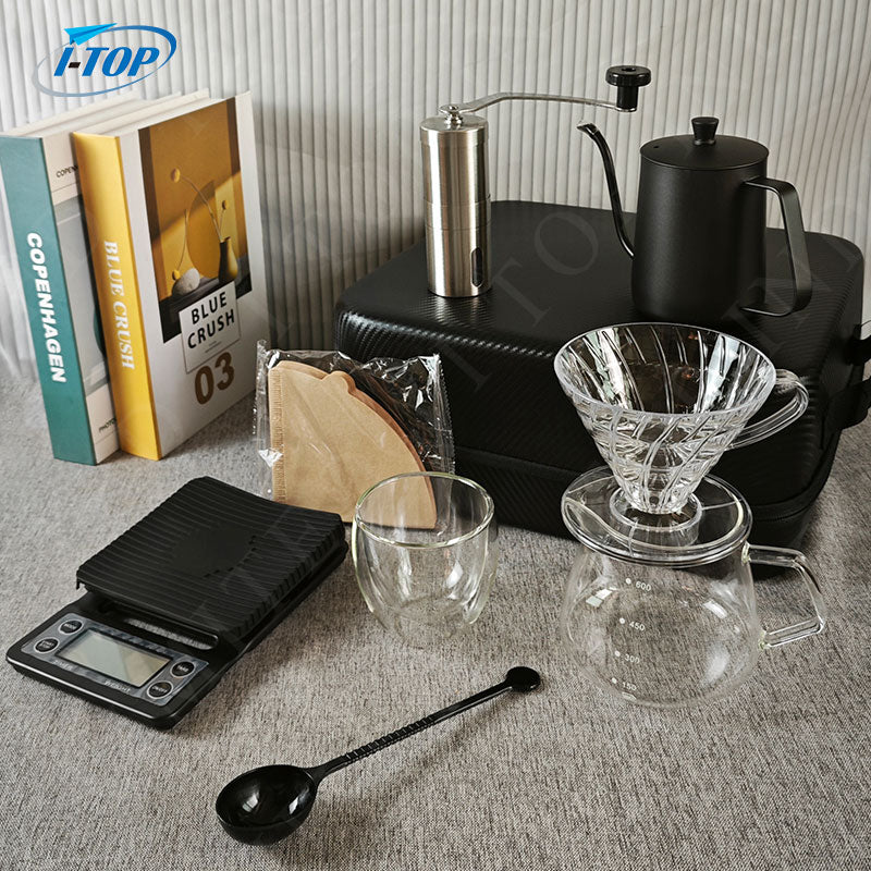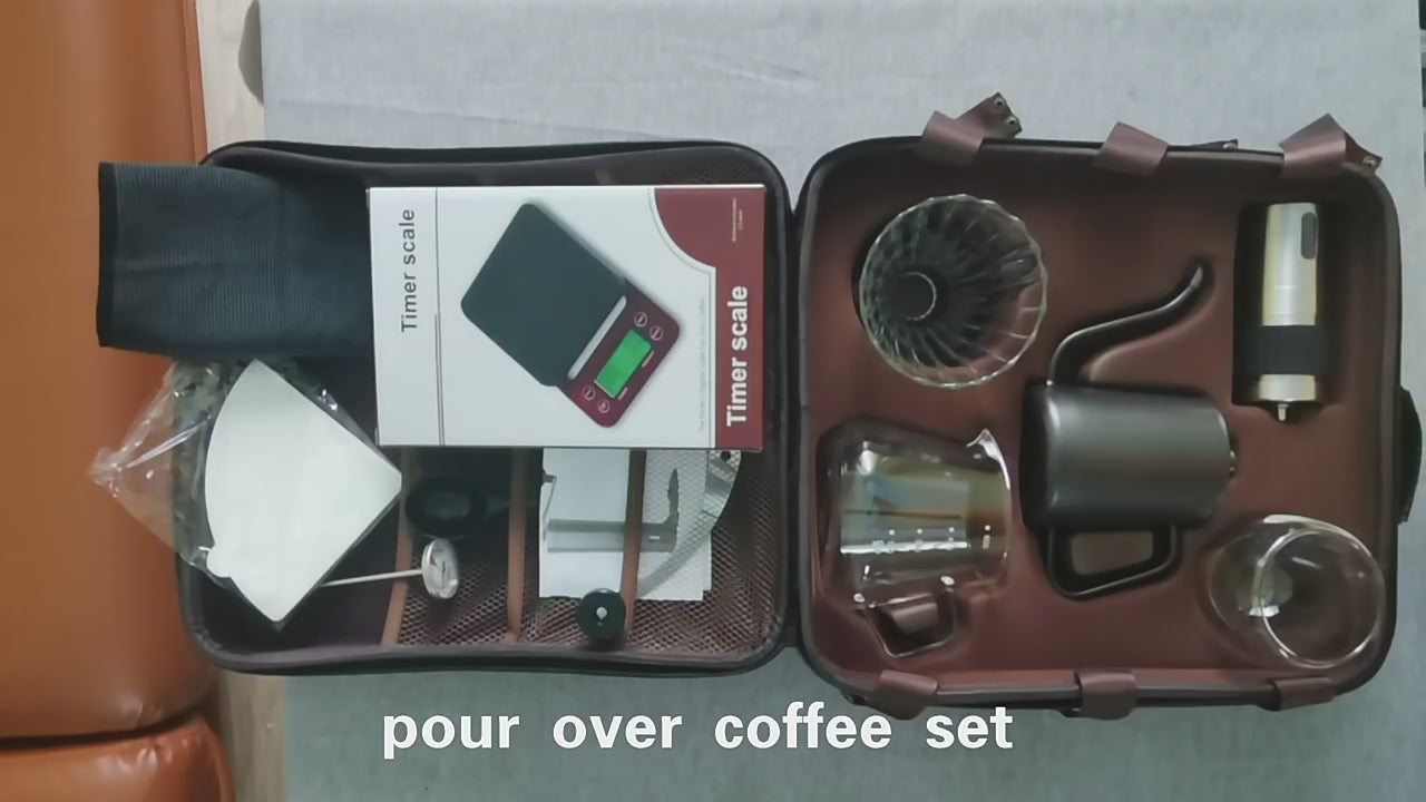 مجموعة ماكينة صنع القهوة الأكثر مبيعًا هدية للسفر في الهواء الطلق مع مطحنة يدوية وغلاية وحقيبة قهوة
