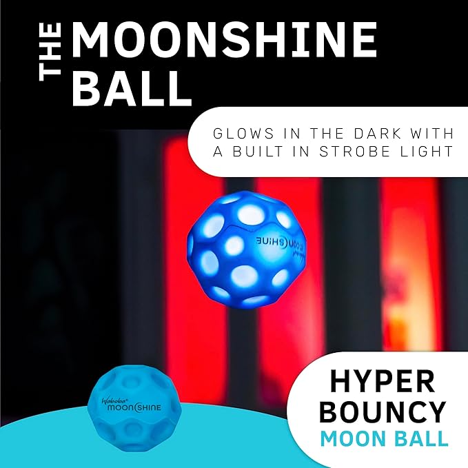 كرة القمر المضيئة الجديدة! ارتدها لتفعيل ضوء القمر الأبيض المتوهج. يبقى ضوء القمر مضاءً لمدة 7 ثوانٍ بعد ارتدادها. بفضل ضوء LED الوامض، تُعدّ هذه الكرة اللعبة الليلية المثالية لإضفاء البهجة على أمسياتكم! ارتدها في الداخل أو الخارج من غروب الشمس إلى شروقها.
