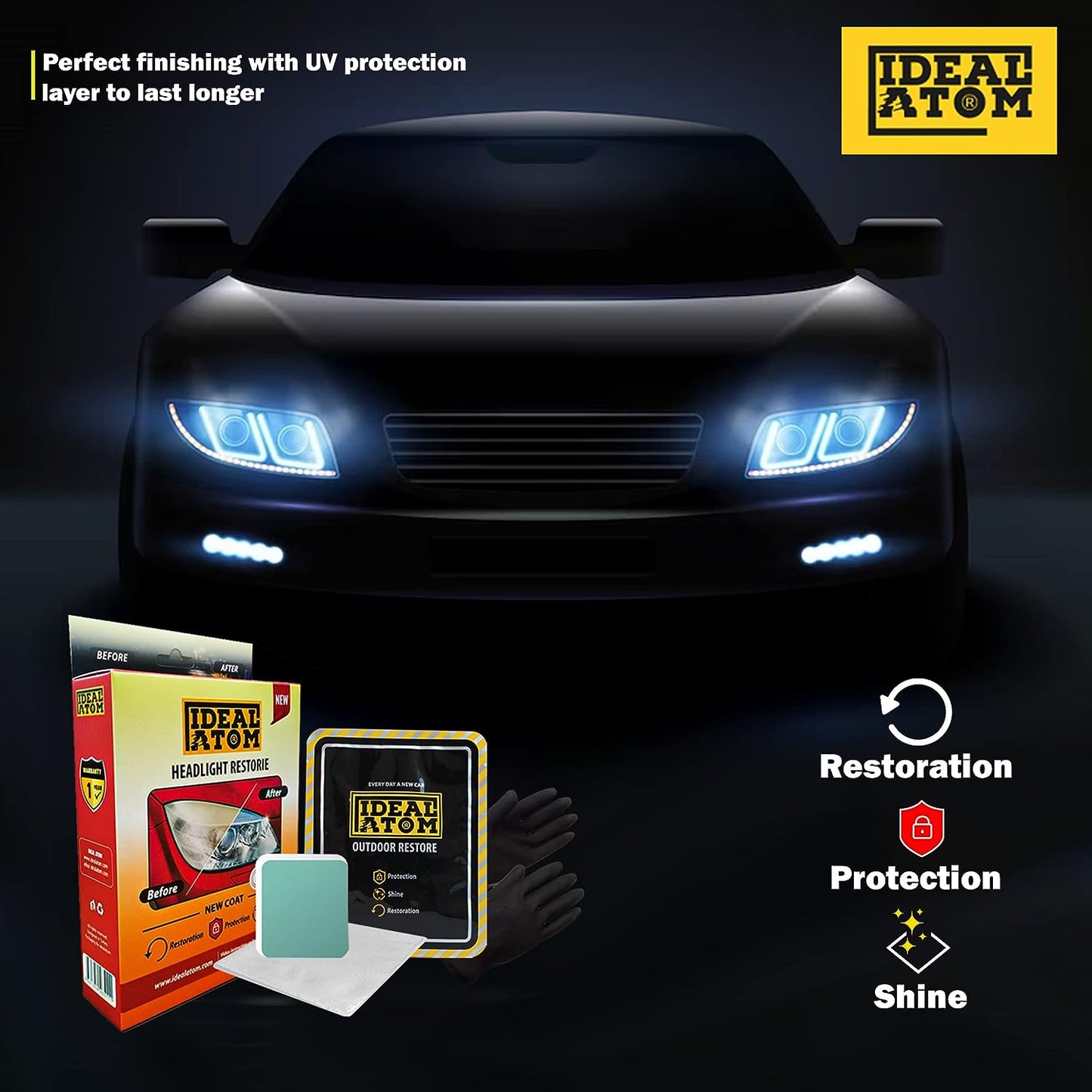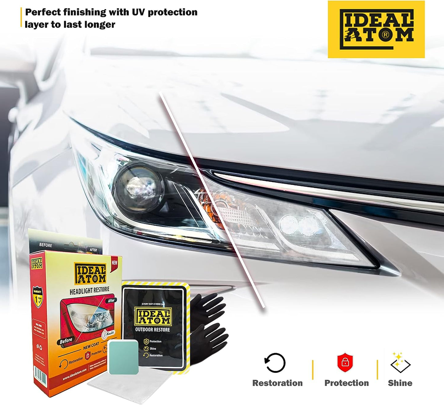 USING IDEAL ATOM HEADLIGHT RESTORE WILL PROVIDE ULTRAVIOLET PROTECTION FOR YOUR CAR HEADLIGHT AND GIVES IT THE LOOK OF BRAND NEW LIGHT, TO EXPERIENCE SAFE DRIVING WITH CLEAR VISION.