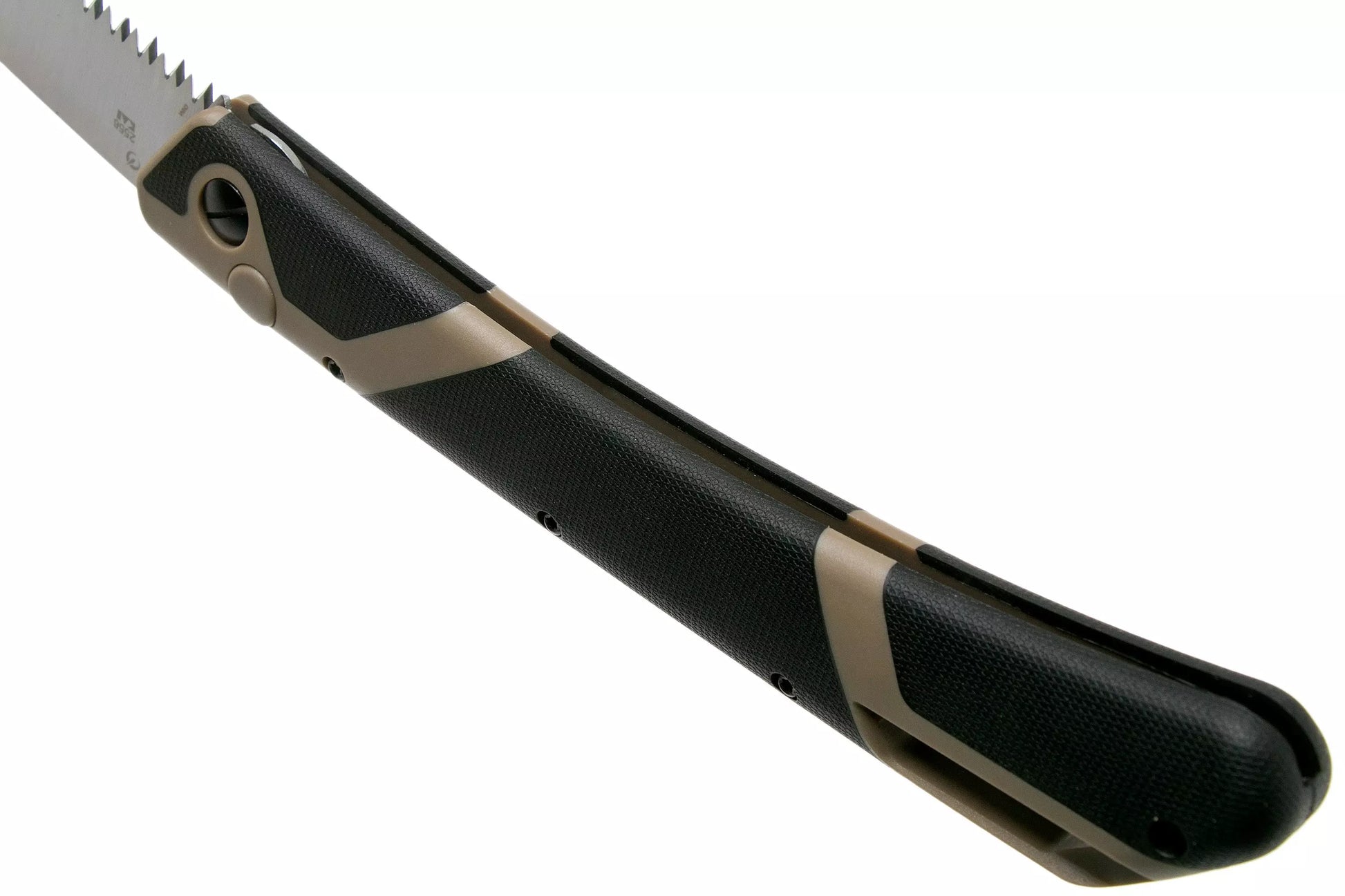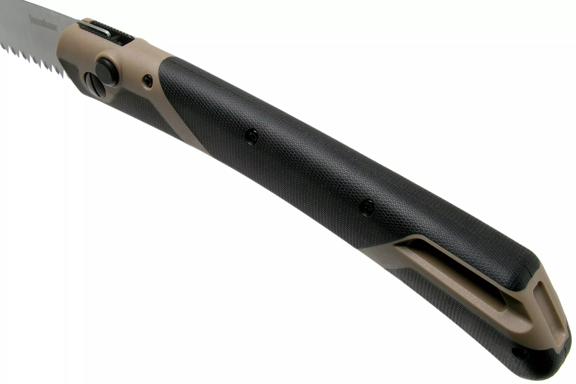 The Kershaw Taskmaster Saw 2 is a foldable saw. It is an improved version of the original Taskmaster. Kershaw, for instance, removed the finger grooves for a more modern look and feel. And yet you still have enough grip because of the cleverly placed rubber scales. The Taskmaster 2 is perfect for anyone looking for a compact saw. When working in the garden or when you go camping. The Taskmaster is truly a valuable addition to your gear!.