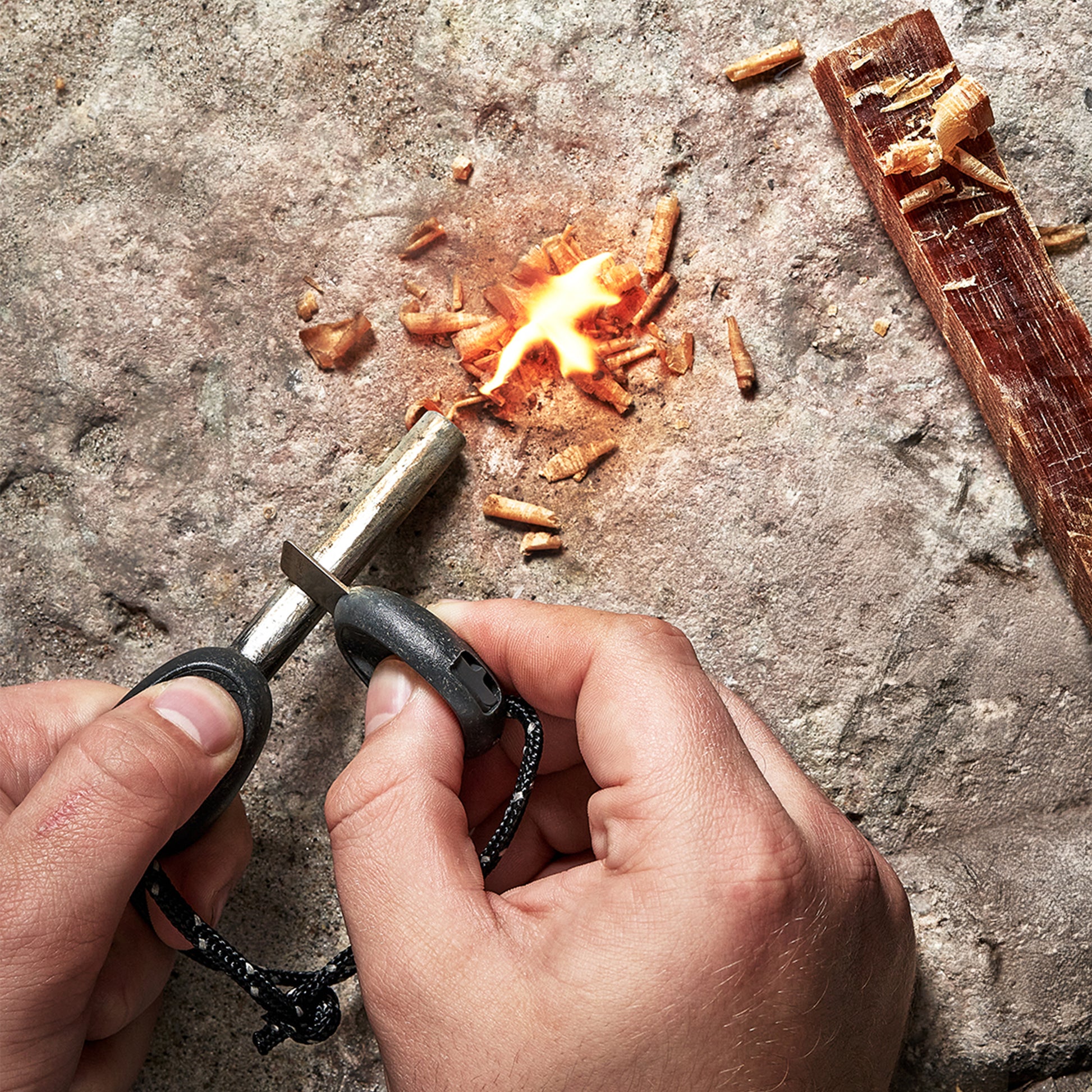Your best firestarting friend for igniting fire in any weather. • Waterproof, works when wet and windy. • Hot sparks 2 980°C/5 500°F • Durable, up to 3000 strikes • Grip friendly design and travel safe • Built-in emergency whistle 120 dB • Handles made of massbalance polypropylene, 100% bioattributed Made in Sweden