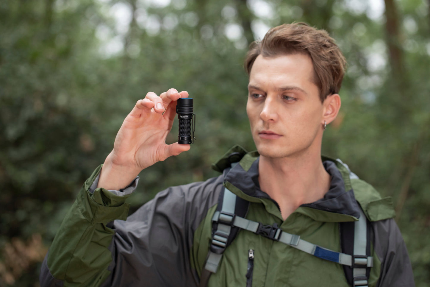 The Baton Turbo, resembling a finger in length, boasts a 65,025 Candela that delivers its beam up to 510m with 1,000 lumens, covering your outdoor needs including camping, hiking, or cave exploration. Featuring an included rechargeable 18350 battery and the option to swap in CR123A batteries, offering versatile power sources. Embedded switch design prevents accidental activation, with a sleek dashboard displaying both brightness levels and power status clearly. The custom two-way clip enables deep bezel down pocket carry. You can also clip it to your hat, or attach the included lanyard to your wrist.